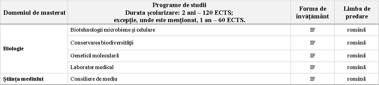 Domeniul de masterat, programe de studii, forma de învățământ și limba de predare