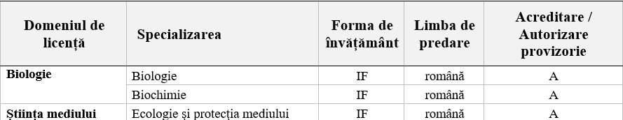 Domenii de licență și specializări