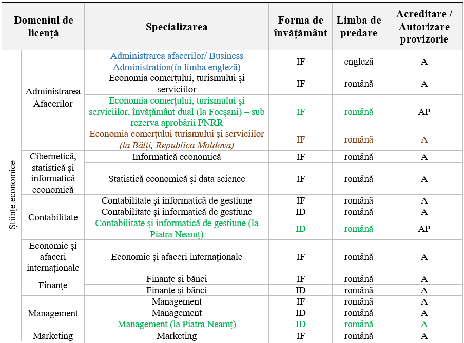 Domenii de licență și specializări