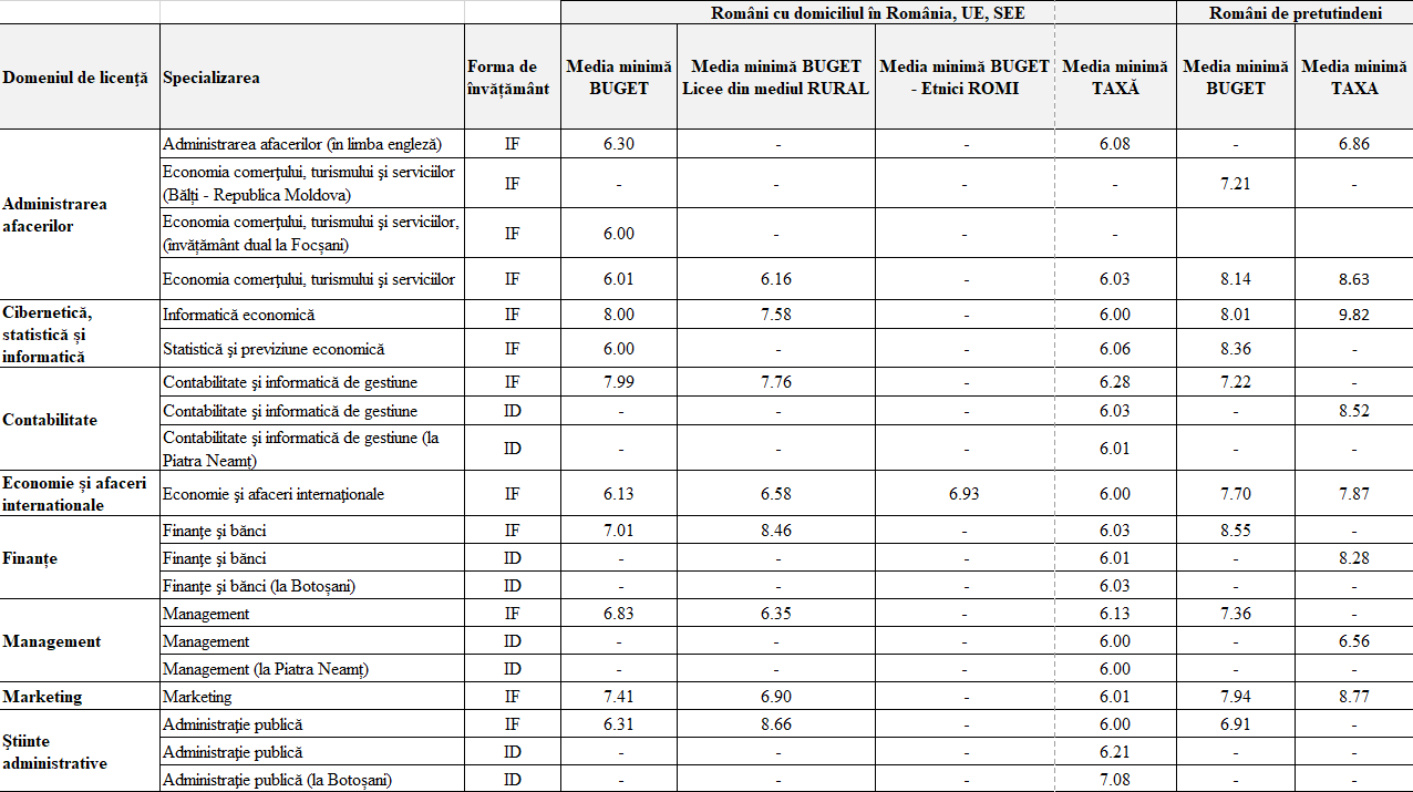 Atenție, acestea sunt ultimele medii de la admiterea din 2025. Ele sunt prezentate strict cu caracter informativ. De la an la an, mediile minime/maxime pot varia semnificativ.