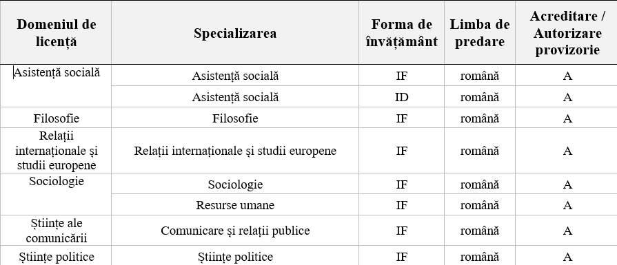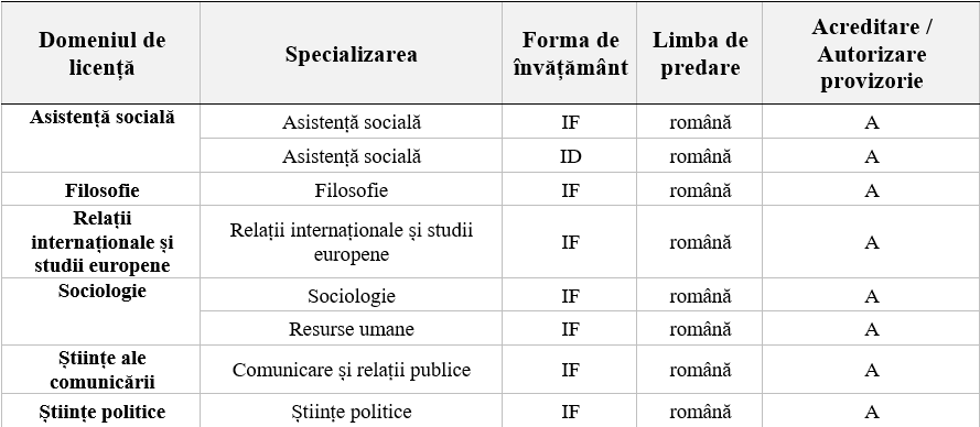 La Facultatea de Filosofie şi Ştiinţe Social-Politice poţi explora domenii precum: filosofie, sociologie, resurse umane, asistenţă socială, ştiinţe politice, relaţii internaţionale şi studii europene și știinţe ale comunicării.