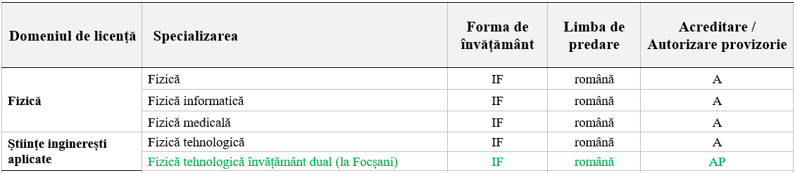 Domenii de licență și specializări