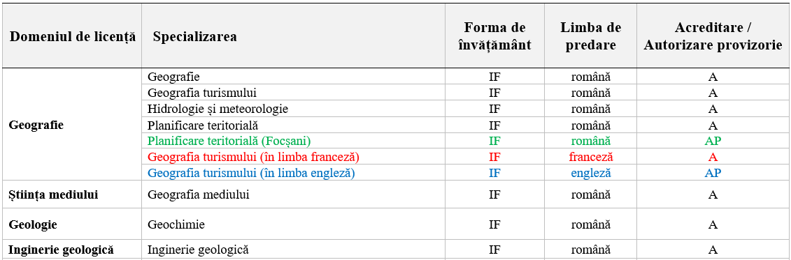 - 4000 lei pentru specializările Geografia turismului, Geografie, Hidrologie şi meteorologie, Planificare teritorială, Planificare teritorială (la Focșani), Geografia mediului;