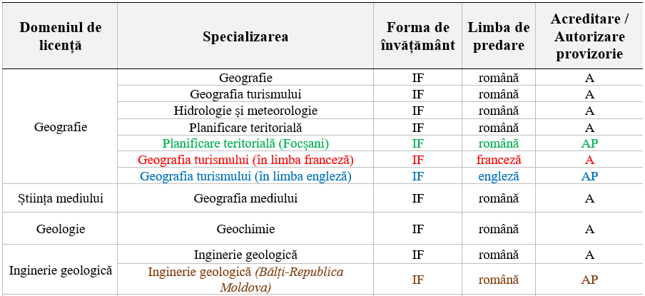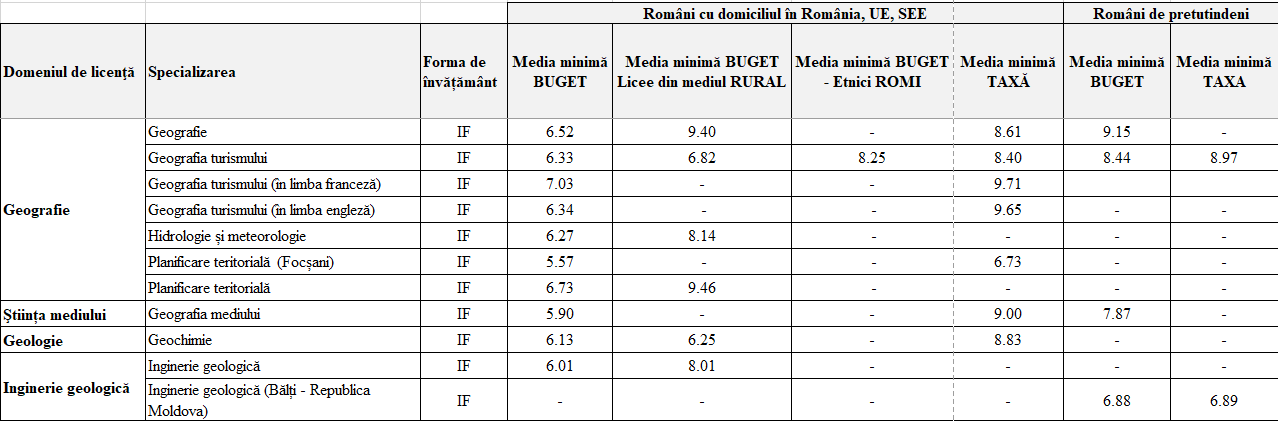 - 4000 lei pentru specializările Geografia turismului, Geografie, Hidrologie şi meteorologie, Planificare teritorială, Planificare teritorială (la Focșani), Geografia mediului;