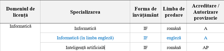 La Facultatea de Informatică (FII) ai şansa de a studia informatica la un standard profesional de excelenţă, pentru a putea deveni un specialist de performanţă care să asigure dezvoltarea societăţii informaţionale din România, în contextul integrării europene. Oferta de cursuri este permanent corelată cu tendințele internaționale și cu cerințele de pe piața muncii, incluzând acum, de exemplu, Cloud Computing, Inteligență Artificială, Programare IOS / Android, Dezvoltarea sistemelor fizice cu platforma Arduino, Smart Card-uri, Antreprenoriat în IT, Practică în industrie – ca să numim doar câteva.