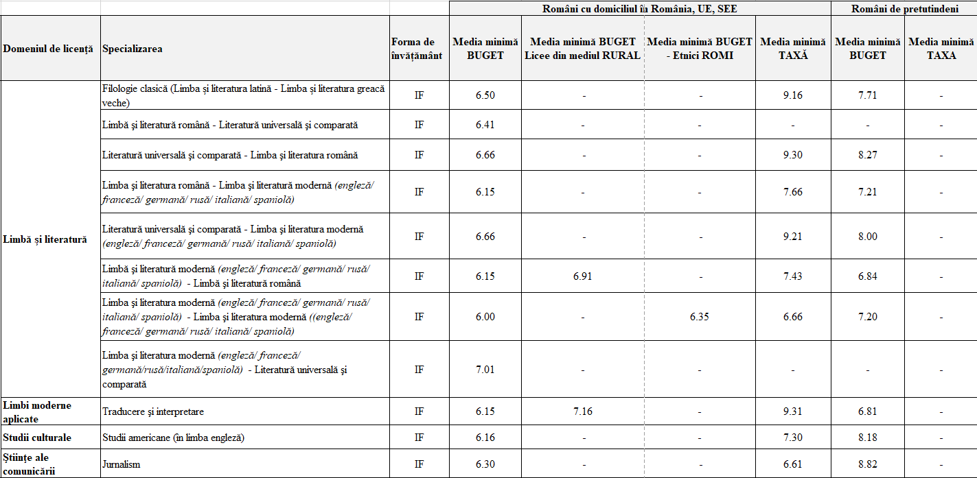 Atenție, acestea sunt ultimele medii de la admiterea din 2025. Ele sunt prezentate strict cu caracter informativ. De la an la an, mediile minime/maxime pot varia semnificativ.
