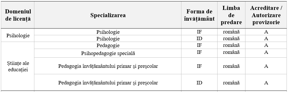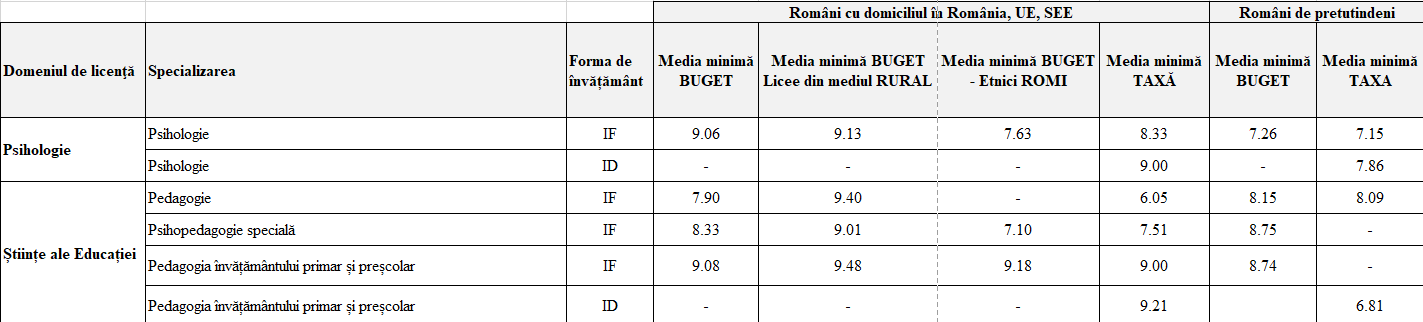 Pentru specializările Psihologie (IF și ID), Pedagogie și Psihopedagogie specială: