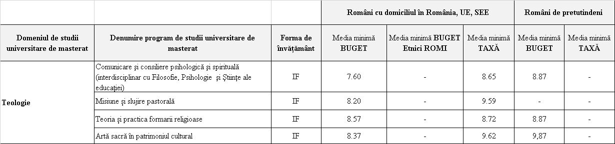 - 40% Nota la interviu, susținut în limba de predare a programului, pe baza scrisorii de motivație depuse de candidat la dosarul de înscriere.