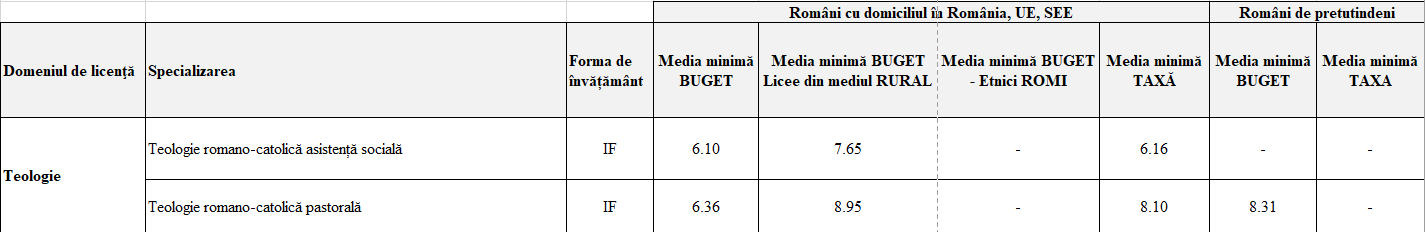 Programul de studii Teologie Romano-Catolică asistență socială pregătește asistenți sociali, consilieri în probleme sociale, mediatori sociali, pedagogi în licee seminariale, consilieri și referenți culturali în așezămintele bisericești, documentariști, lucrători în sistemul social public și privat, asistenți de cercetare, cercetători, funcționari publici.